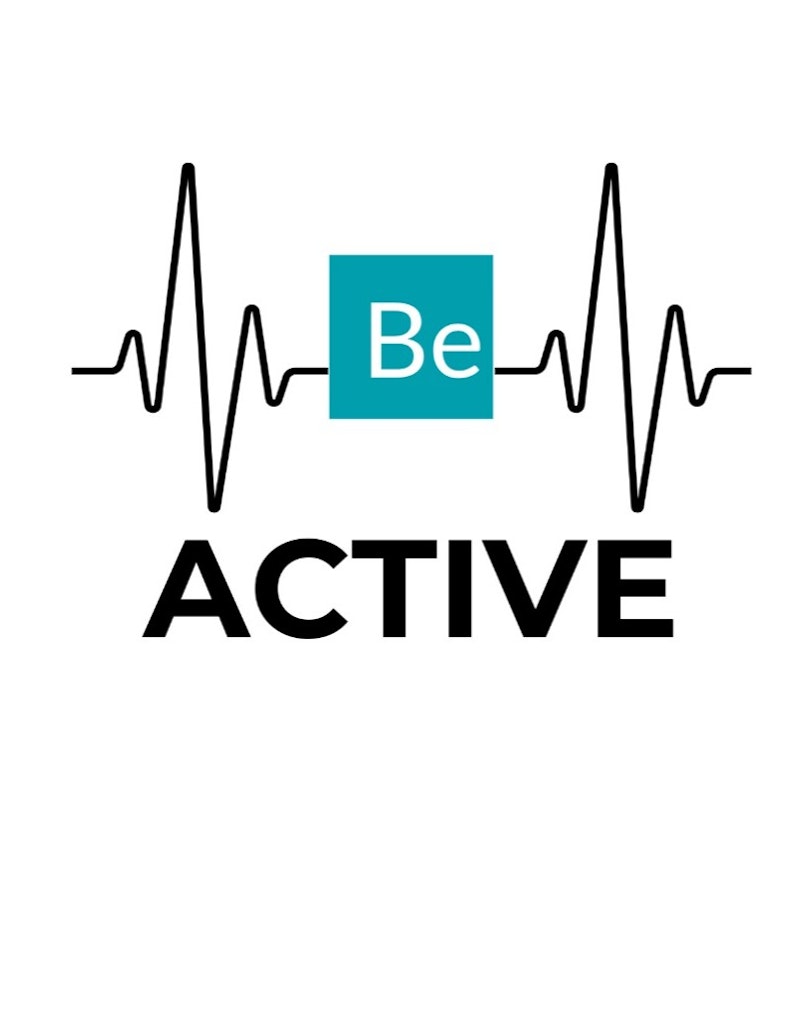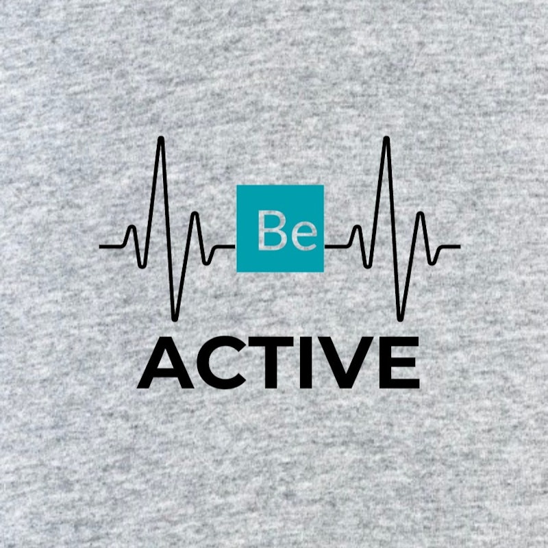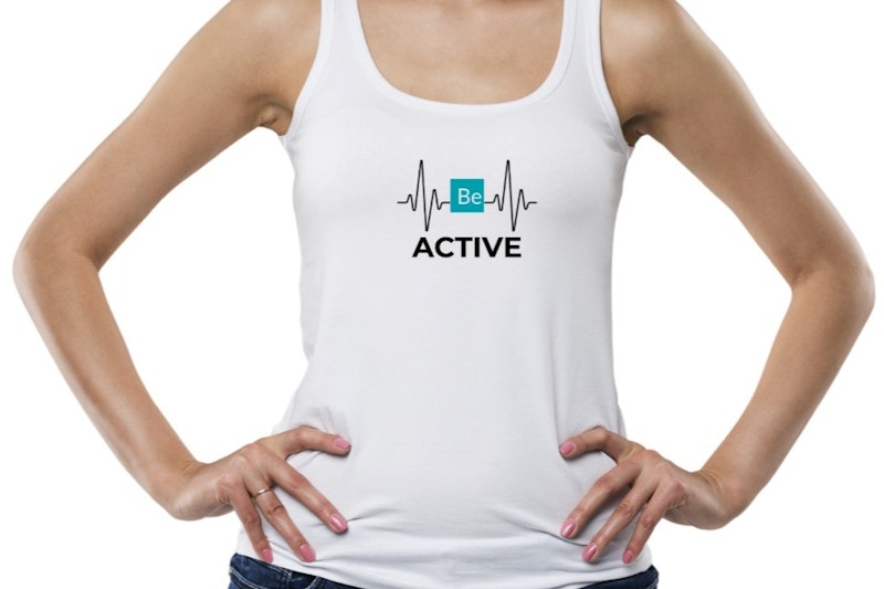 A ladies ideal razerback tank top featuring a front graphic "Active" with heart pulse beat and small Befitment brand logo graphic on back.