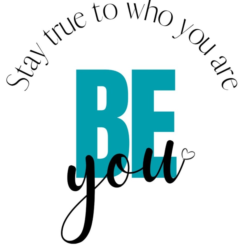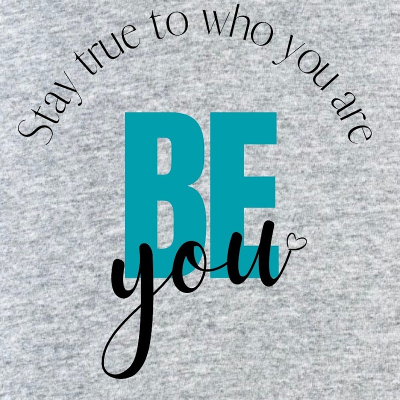 A soft style jersey knit tee featuring a front graphic "Stay True To Who You Are - Be You" and small Befitment brand logo graphic on back.