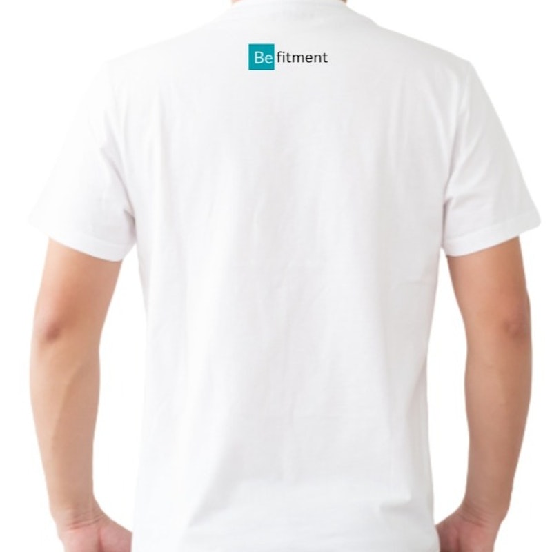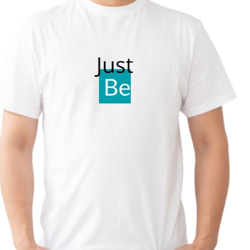 A soft style jersey knit tee featuring a minimalist front graphic "Just Be" and small Befitment brand logo graphic on back.