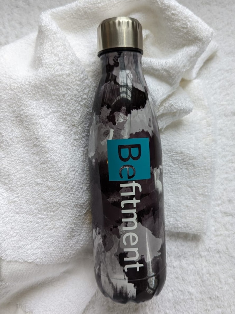 Double Wall insulated stainless steel water bottle. Keeps liquid hot and cold for up to six hours. Hand wash only. Not suitable for freezer.